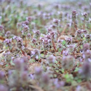 見つけました。ヒメオドリコソウが咲いていました。 ホトケノザやヒメオドリコソウはアリ(蟻)に種を運んでもらって繁殖する植物です。「アリ散布植物」