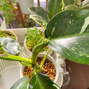 フィロデンドロン ホワイトプリンセス🪴 白の斑が、2枚続けて出なかったので先祖返りなのかなぁと諦めていたらチロリと白が入ってた✨ 切ると良いように聞くけれど…元気に育っているから可哀想で切れない😅💦 👆🏼胴切りをガンガンする人と同一人物なのか?🤣🤣🤣