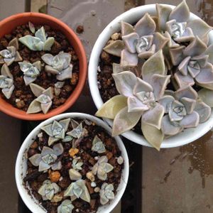 葉挿し成功‼︎ 朧月ヾ(*´∀`*)ノキャッキャ 朧月と思ってる… 赤いのは朧月ですよね? 他のはわかりませんが…^^; 多肉1年生レモータ喜びの舞ヾ(*´∀`*)ノキャッキャ 明日、鉢に植えてあげようっ♡