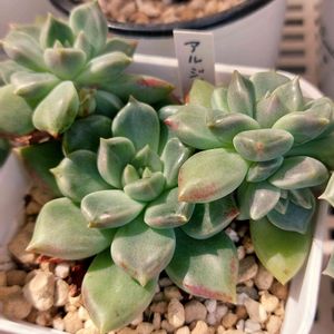 切り離したアルジェと、ポチッた多肉におまけとしてついてきた謎ベリア🤭🌱 年少👶、年中👦、年長さんみたいな大きさです。◕‿◕。🌱