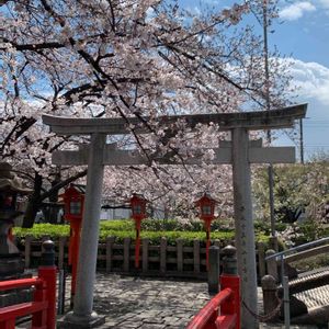 源経基を祀っている「六孫王神社@京都」のソメイヨシノは、そろそろ見頃🌸 通称「恋の架け橋」と呼ばれる朱の太鼓橋と灯篭に桜が映えてええ感じ。 観光客もあんまりいないけど雰囲気が良いので桜の穴場スポットです‼️