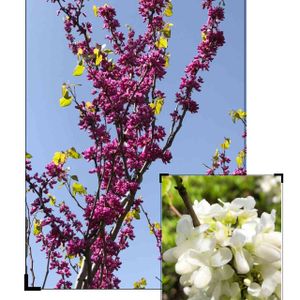 花蘇芳(ハナズオウ) 名前は花の色が、古くから染料植物として用いられるジャケツイバラ科ジャケツイバラ属のスオウの心材からとれる美しい紅色に似ていることに由来する。 (ネットより) シロバナも清楚で可愛いですが、 春咲き花木が咲き乱れる季節の中では、その華やかさに埋もれてしまっている感じも否めないですね。