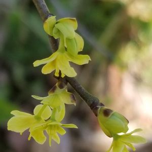 ★アオカズラ(青葛)★ アワブキ科の落葉蔓性植物 花期:3〜4月 果実はφ5mmほどの歪んだ球体。小房が2つあり、2つの実がくっついてヒョウタン形になることが多い。 花はφ5mmほどの小花、黄色の花弁5、雄蕊5、雌蕊1。 2025.11.3 筑波実験植物園(EN)📱