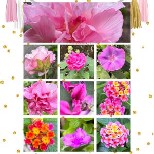 まだまだ元気なピンクグループ🩷。アサガオは、夕方に💙青からピンクに🩷。真ん中のピンクさんはご近所で終わりかけてた萩のお花です。 あ👀ランタナさんはビタミンカラーさんだわ〜😝