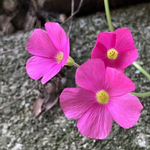 今日のお花 オキザリス🌸 散歩🚶♀️中 石垣を垂れ下がる姿 自由気まま♪♪ いいなぁ〜 見惚れるゥ〜 カタバミ科カタバミ属