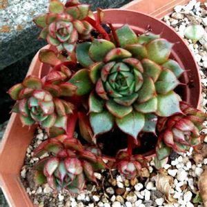 【エケベリア属 大和美尼】 Echeveria 'Yamato-bini' Echeveria 'Yamato-mini' 大和錦×ミニマの交配種 大和錦特有のダークグリーン💚 葉のフチや爪先は赤❤️ 葉裏もうっすらと赤の筋❤️ 秋~冬は外側の葉から赤く色づき、 葉が締まる事でコロンとした 丸いフォルムになるとの事 【レポスの多肉村】さん のサイトより抜粋 https://tanikumura.com/smartphone/page343.html 株元から一周するように 子株を出していましたので、 角度を変えて撮影しました ダブリモアリマス📷 ✏️自分用❄️越冬メモ✏️ 直射日光、風通しの良い場所を好む マイナス1~2℃まで耐え、 霜に当てても可 _φ(・_・ 【サボテンランド Cacto-Loco】さん のサイトから抜粋 http://cactoloco.jp/dic/A291.html