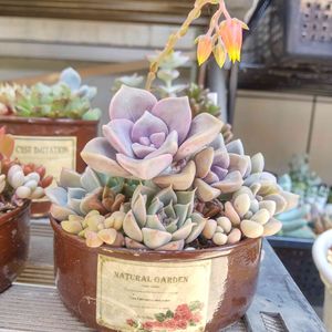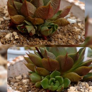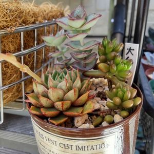 購入時pic2021年12月1日。 フリマで購入した口紅レンゲ、大和美尼。と、オマケで入っていたロゲルシー、淡雪、リトルビューティ。どれがどれかわからなくなってしまった😅 我が家に来てから一度調子を崩し、今は良い感じになりました🤗フリマでの購入を重ね、遠県から来た多肉は馴染むのに時間がかかる気がしています。近県の方から買うのがよいかも。