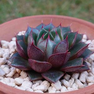 エケベリア:大和美尼 渋い、そしてカッコいい🤣 多肉ラボ©お題 冬越し対策……😅 うーん。う~ん🤔 ベランダのスチールラックをビニールで覆って置かれる組と、夜だけ室内組とに分けての管理になるかな🤔 寒波到来とか言われたら… とりあえず、全部室内に⁉️ 家族の反対、押しきれるかな🤔…😅