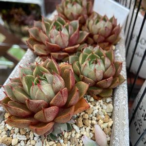 フォロワーさんのpicで見たピンクネーションが可愛くて、猫の手🏷の多肉だと聞いたので、たまたま夫がその🏷の多肉を扱っている園芸店の近くに行ったのでよってもらいました。 ピンクネーションは、なかったんですが、かわりに写真が送られてきたので2つ選んであと1つはおまかせにしました。 みんな同じに見える夫はどれを選んだでしょう。笑 ルーズバンクロフト ライラックスノー ジュピター 大和美尼 大和錦 サブコリンボサ ラパン センセプルプ オリビア 霜椿