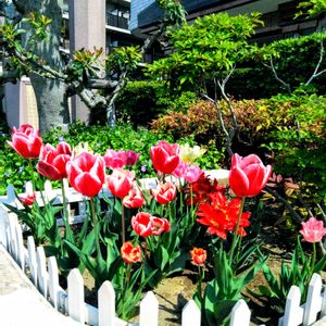 職場の花壇のチューリップ🌷が満開です。
