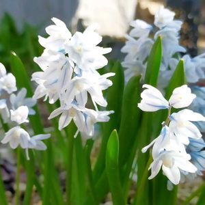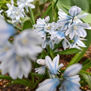 先週の実家の庭にて🤍🩵🩷💙 プシュキニア🤍🩵🤍🩵 白色🤍に ブルー🩵の線 なんて 可愛いの😍💕 後ろのピンク色🩷とブルー💙の蕾ちゃん なんて言う子だっけ〜? 咲いてからのお楽しみ💕 🏷️白い水曜日に 参加させて頂きます🤗