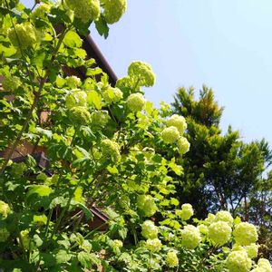 昨日、名前を間違って投稿した、ビバーナム スノーボールさん💚 今朝見たら、かなり色が変化していたので🤗🌿 明日は、もっと白っぽくなっていそうです😌✨