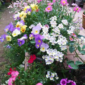 こんばんは😃🌃 今日も暖かい1日でした😌🌿 3時頃からお家🏡でBBQをしましたが、ふと横を見るといつもの寄せ植えのお花🌼が目に入りパチリ📸 😉 お出かけは出来ないけど、お酒🍺🎶も少し入り、ちょっと幸せ🍀😌🍀な気分に(*´ー`*)💗✨ やっぱりお花はいいですね😌💕