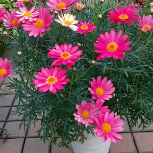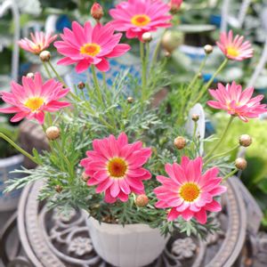 R5年4月12日(水) おはようございます💕😁💕🌱🌼 ベランダにて、二年目マーガレット・シンプリーコーラルちゃんが綺麗に咲いています🌼🌼🌼 ピンクはテンション☝️☝️です〰️(///∇///)👏♥️ 今日は、久しぶりに東京へルンルンでお買い物に行って来ます👠✨👜😁💕(笑) 皆様、良い1日を🌱