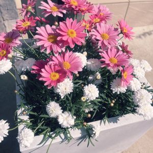 おはようございます☀ マーガレットの寄せ植え🌸 可愛くて癒されます〜✨ 慣らし保育2日目に子供を送り出し、2時間ないくらいですが僅かな1人時間にお花を満喫します ٩( ´ᆺ`)۶🌸