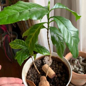 ご機嫌取りが上手くいかない、我が家のコーヒーの木。 新芽はあるけど葉が黄色くて、ぐったり気味🤨 水あげすぎ?日差し強すぎ?