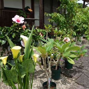 続き〜 昨日の雷、夕立で鉢が倒れたけど、、関係なく、今日元気😂 南国気分🌴🌺🌴🌺