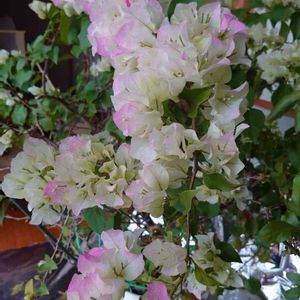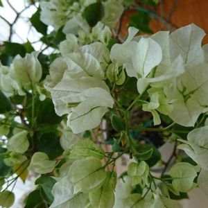 日光の当たらないブ―ゲンビリアは、ピンクのはずですが、、😓真っ白です!窓越しの太陽に当てるだけで、縁が淡いピンクに変わります😄