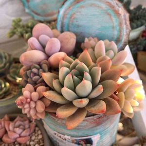 この鉢は職場の先輩が私が多肉好きなのを知って先輩が通っている陶芸教室で植木鉢を作りプレゼントしてもらった物です✨ 職場で多肉好きを公表してもなかなか多肉仲間は増えないけど💦こうやって職場の人が私の事を思い多肉に使える物をプレゼントしてもらえるなんて有難い環境で働けているなぁとしみじみ思います☺︎ 腹が立つ事も多々あるけど頑張って働こう!……と今の所思います😁 何を植えようかずっと悩んでましたが先日届いたトロピカルガーデンさんの苗がリースに入りきりそうにないのでその中のラズベリーアイスにこの鉢のメインとして入ってもらいました💕 ラズベリーアイスは初めましての子なのでこれからどんな風に変化していくか楽しみです🎶
