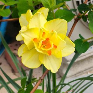 こんにちは☁ 雨🌧で傘☂でお守りしていた八重咲き水仙タヒチ咲きました🤗