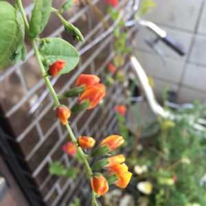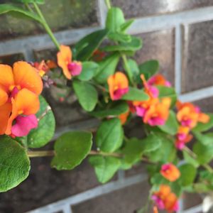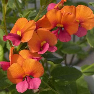 コリゼマ コルダタムはオーストラリア原産のちょっと珍しい花です。 花色が鮮やかなオレンジ色のため フレーム フラワー(炎のように燃え立つ花)の別名でも呼ばれています。 また ヒイラギマメ(柊豆)の別名の通り 葉っぱや花に多数のトゲトゲがあるので 素手で触らないよう注意しましょう。 耐寒温度は5℃のため温暖な地域以外は室内での冬越しとなります。 オーストラリア原産。 マメ科ヒイラギハギ属の多年草。