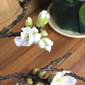 庭に落ちていた桜の枝🌸 水挿ししていたら、綺麗に咲き始めました💓 一分咲き❓ いや三分咲きかな⁉️ 枝を拾わなかったら、花を咲かせることもなかったのかと思うと、命を繋げられてたことが、とても嬉しいです💖