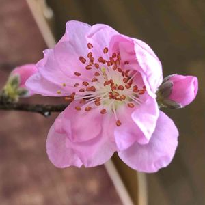 今日のお花🌸モモ🌸 子どもの頃、家に枝垂れ桃があって、梅や桜より、このピンクの桃の花が好きでした💓 最近、あまり言わなくなりましたが、これが本当の『ももいろ』ですね🎶😊