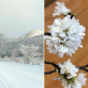 今朝の雪景色😅 この、粉を振りかけたような雪景色が、一番好きです💓 それとは対照的に、室内では、水挿した桜が満開になりました🌸🌸🌸🌸🌸 桜が散った後に出るはずの葉っぱも、別の枝から出始めています🍃 桜の木にある芽は、全部同じに見えて、すでに花と葉っぱの出る芽が、別々にできているのだそうです😅 枝を拾うタイミングによっては、葉桜から先に見れたかも知れません😊