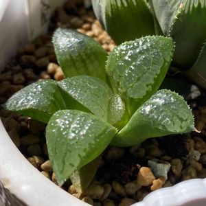 お世話になった方にみんなで多肉やお花のプレゼント🎁をしたのですが〜。 自信がな〜いと私に戻ってきました🤣🤣 高くて自分のご褒美にも買えなかったので 喜んではいけないけどやっぱり嬉しい〜💕💕 このハオルチア さんのお名前を教えてください