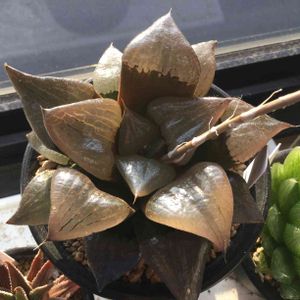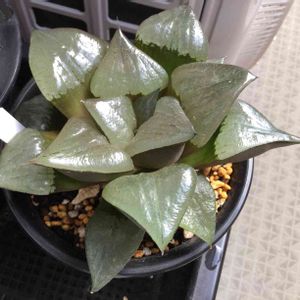 2週間前に手に入れた「阿寒湖」です。 おまけでついてきたもので、購入時からこんな色、形でした。 3日前に初めて水やり(底から出るくらい)し、他のハオルチアは活き活きしましたが、この子だけはハリが出ず、以前よりグラグラしてる気がします😱 朝まで軒下で、日中は窓際に取り込んで送風しています。 これは根腐れでしょうか⁇ 出来ることはやって救ってあげたいです🚑