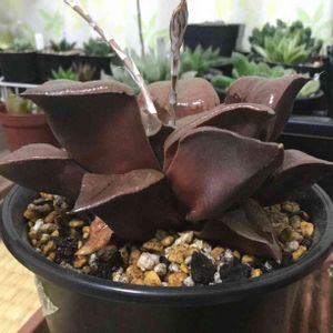 今日もハオルチア「阿寒湖」です。 2018/2/13のアップから3ヶ月。葉一枚一枚に厚みが出て、テカり具合が半端ない。葉を持って持ち上げると鉢ごと上げられるぐらい根が張ってます。 本当に綺麗!!!!!