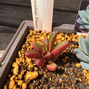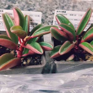 春までは買わない詐欺である(^-^; 100均行ったらにゃんこ鉢と この赤い多肉ちゃんを見つけて買ってしまいました。 札なしちゃんですが、この子はペペロミア?? お解りの方いらっしゃったら 誰ちゃんか教えて頂きたいです、 宜しくお願いします<(_ _)> 追記:回答頂きました! ペペロミア グラベオレンス ちゃんとのこと!ありがとうございました<(_ _)>