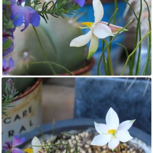 球根植物たち 咲いてきました.°ஐ.* ❹裏庭のターコイズ… 花シワシワじゃない??🔹 ❺どこからきたの?(≧▽≦) ❶昨日 ❷ꕀ⋆❺今朝 📸