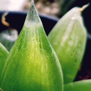ブルビネのアップ画像 ハオルチアに似てますが ハオルチアではありません。 葉先の透明度に感動✨