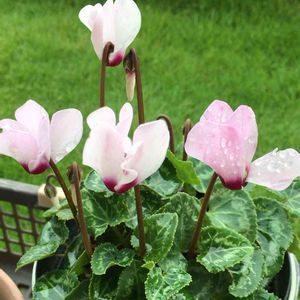 寒さに当ててしまい 一度は花がなくなったシクラメンの寄せ植え また花が咲きました💞