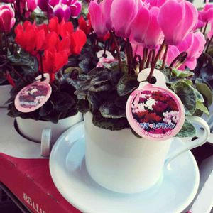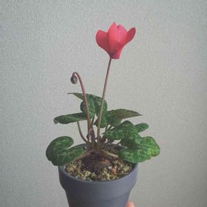 100均で買い物中に見つけたミニミニシクラメン❣️身長5センチ位❓可愛くて興奮してしまいました。GSでお礼のイイねをいただいた方が投稿されているのを見つけておんなじだぁとまた興奮❤️暖かいお返事もいただき嬉しくなりました❤️