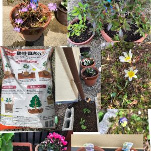 こんにちは 夕方から雨になる☔️予定が朝から降っています 金曜日の蕾たち 参加させて下さい🙏 オダマキとガーデンシクラメンです 薔薇🌹もあるので後で投稿させて頂きます ツツジ「さざなみ」植え替えました。ピートモス、パーキュライト 揃えると大変なので配合されている肥料に ツツジ、サツキ用土が無いので 挿し木にしていたサツキも鉢に〜 GSさんからのスノーストーム 紫色は、浅鉢で成長がイマイチだったので深鉢に変えました 頂いたクリスマスローズ葉っぱ 弱って来たので2つは、地植えに 玄関の蕾ばかりのマーガレットが色付き始めました ローダンセマムも咲いて欲しい