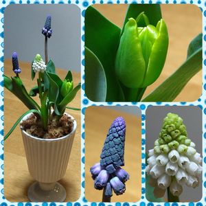 💜🤍ムスカリ💜🤍 & 🤍💚チューリップ🤍💚 紫色のムスカリと白色のムスカリ、それからグリーン(?!)のチューリップの水苔寄せ植えです🪴✨ 紫色のムスカリ、咲き方が少し変わってるみたいで、蕾の状態も面白いです🤭土筆みた~い🤗 グリーン(?!)のチューリップも、写真に撮ると濃く写りますが、実際はもっと黄色みが強く、これは何となくお写真でも分かっていただけるかと思うのですが、光沢のある花弁をしています🌷✨やっぱりめずらしいですよね?! 独身の頃から植えてみたいと思っていたムスカリ💜なかなか縁がなく(?)今回初めて、お友だちのお花屋さんでこの寄せ植えを見つけてピンッ‼️👀✨ときて、お迎えすることになりました🤲☺️ 花器・・と言って良いのかな🙄 器もとっても素敵です👏🥰 お花が終わったら、またお友だちに相談しながら次の年にも楽しめるようお庭に植えたり、それぞれに向いた夏越し・冬越し準備をしていきたいと思ってます🌱🧄