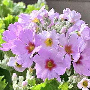 プリムラマラコイデス♡ 可愛らしいプリムラさんをお迎えしました💓 まだお花が咲いていないピーチカラーのウインティーさんも一緒にお迎えして2苗を寄せました🪴 春が待ち遠しいですね😊🌸✨