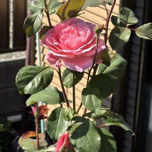 今日咲いたバラ 夏にはこの辺に真っ赤なバラがあった気がするんだけどピンクでした 背が高くて写真が撮りずらい🥹 元々あったバラなので品種が特定できなくて クイーンエリザベスなのかな??って予想