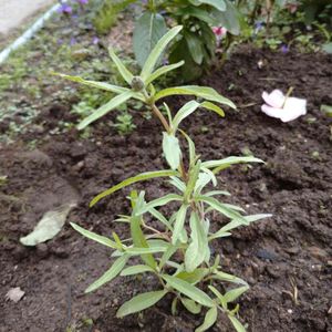 知らない間にこんなのが生えてました。 これはきっとジニアリアネリス かも! 期待大 昨年植えた覚えないけど! 不思議!!!