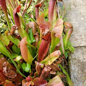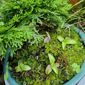 スイカさんのpostを見て、我が家も食虫植物たちの植え替え🪴 実は先月にホムセンで食虫植物の寄せ植えを見つけたのですが、かなり弱ってるのに金額がまあまあしたのでいつか値下げになるかと通ってました。 毎回、サラセニアの恐らくプルプレア?の中に水を入れられてるので毎回抜いて見守ってましたが、モウセンゴケが弱ってきてたのでついに購入。 タンクかなんかと間違ってる?なんで水入れる💧 いいサイズの鉢がなかったので、今回小さい縦長の鉢に植え替えました。 うちはベラボンメインのねこチップに植えて、入れ物にねこチップベットを作ってそこにいれてます。 簡易温室ですが寒さにはモロ当たるので、越冬してもらおうと思います!