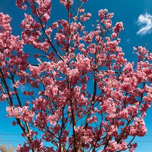 歩道を歩いていると ピンク色のサクラ🌸が咲いてて、 花の下まで来ました。 ヨウコウザクラさん