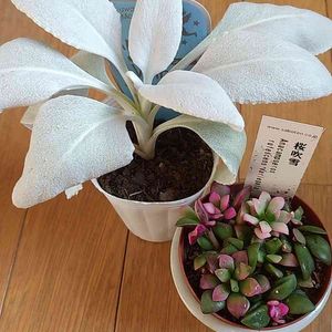 桜吹雪とエンジェルウィング=初めての多肉~園芸店に肥料買いに行き、見ているうちにとうとう連れて来てしまいました。育て方分からないから勉強しなきゃ😆💨😸