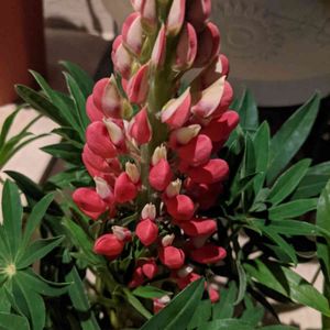 ルピナス 無事に連れて帰りました🚌 夜撮ったので赤に見えますが、濃いめのピンクです。 これから上まで色づいていくのね😚🎶