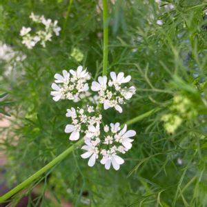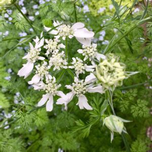 このお花(*^_^*) なんのお花でしょう? 答えは パクチー 私は結構好きなのですが 男性は嫌いな方が多いようで うちでも食すのは私だけ(*^_^*)