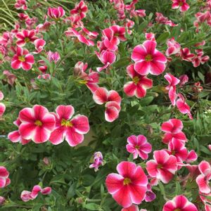 昨夜の豪雨?にも負けず綺麗に咲いてた スーパーベル ストロベリースライス❣️ 今までちょっとしぼんだ感じだったのに今日は綺麗に開いてます。 こちらもモリモリ♪( ´θ`)ノ