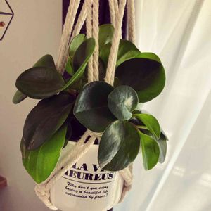 ハンギングpart 2️⃣ ちょっとオシャレなプラ鉢を買って🎵 1番簡単なマクラメ結ぶだけ〜のハンギングを作って🪴 (不器用 大雑把なので💦) 天井から吊るしました🧡 ディスキディア エメラルド🌿 可愛い🥰 もちろん 斑入りハートカズラも吊るしました🪴 写真は後日✨