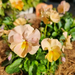 ときめきビオラ🌼バタースコッチ 淡いオレンジ~イエロー色 とても素敵な色合い🎶 特等席に植えました(笑) 他にも欲しかった色あったけど みんな売り切れ💦 大人気ですね😊 この子を大切に育てます🥰
