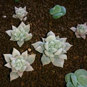 これも葉挿し組♥️ 手前の桜牡丹がほんのりピンクで超可愛いのー(///ω///)❣️ あと花いかだはこれからの成長がすごく楽しみ~(〃´ω`〃)♪